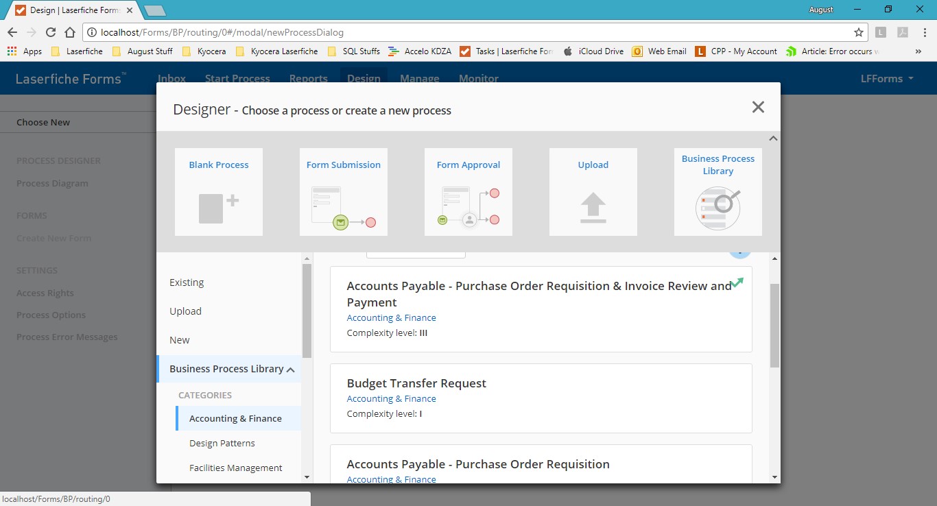 I need the “Start Process” page to look like the Process library page where you can filter based on a category