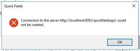 quickfields connection to the server http://localhost:8093/quickfieldsapi/ could not be created. Why am I getting this?