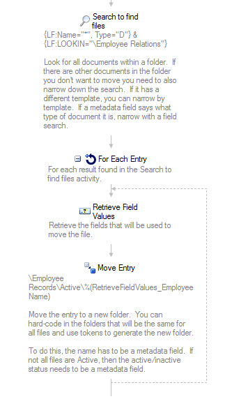 We are fairly new to laserfiche we have some files that we decided to change where they are stored. Is there a way in workflow to move these files so I don't have to move them manually?