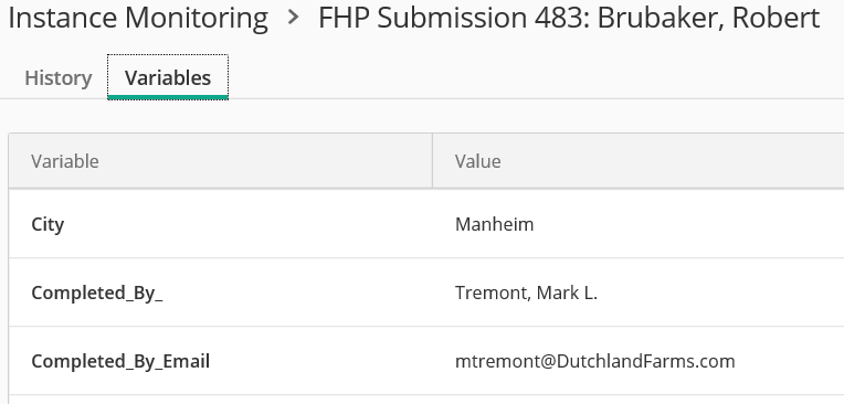 Use case: The user identifies themselves as the one who completed the form by selecting their name from the 'Completed By' drop down. This 'Completed By' drop down is populated from an HRExtract SQL table. When that selection has been made, a second lookup fills a hidden field with the user's email address which is from the same HRExtract table.