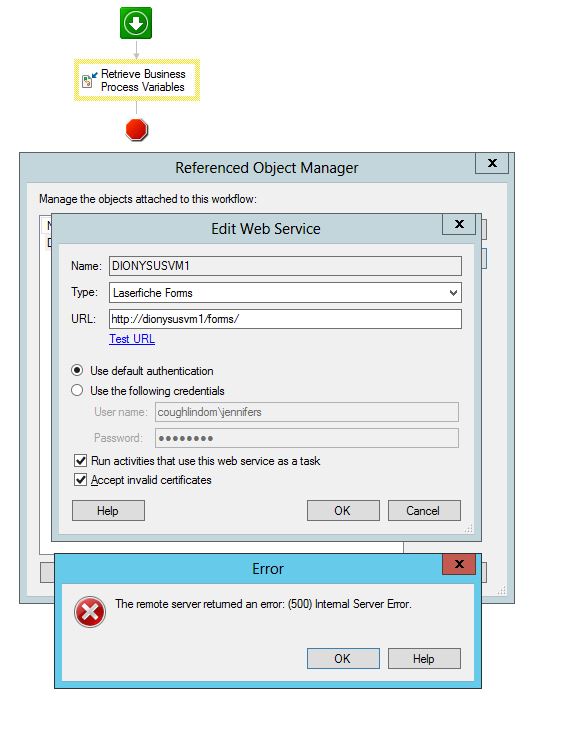 I am trying to use workflow with Forms and when I try and connect to the URL I get the attached error message.