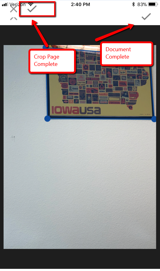 Is anyone else having issues with the page crop completion button on Iphones X? I have a customer that is reporting that when they crop a page using the Laserfiche app and they want to click on the page completion button it is hidden behind the wifi/carrier logos. When they do hit nothing seems to happen so they are forced to click the 'Document Complete' button on the right hand corner without cropping the other pages. Other users in the organization using Android or Iphone 8 or less does not have this issue.