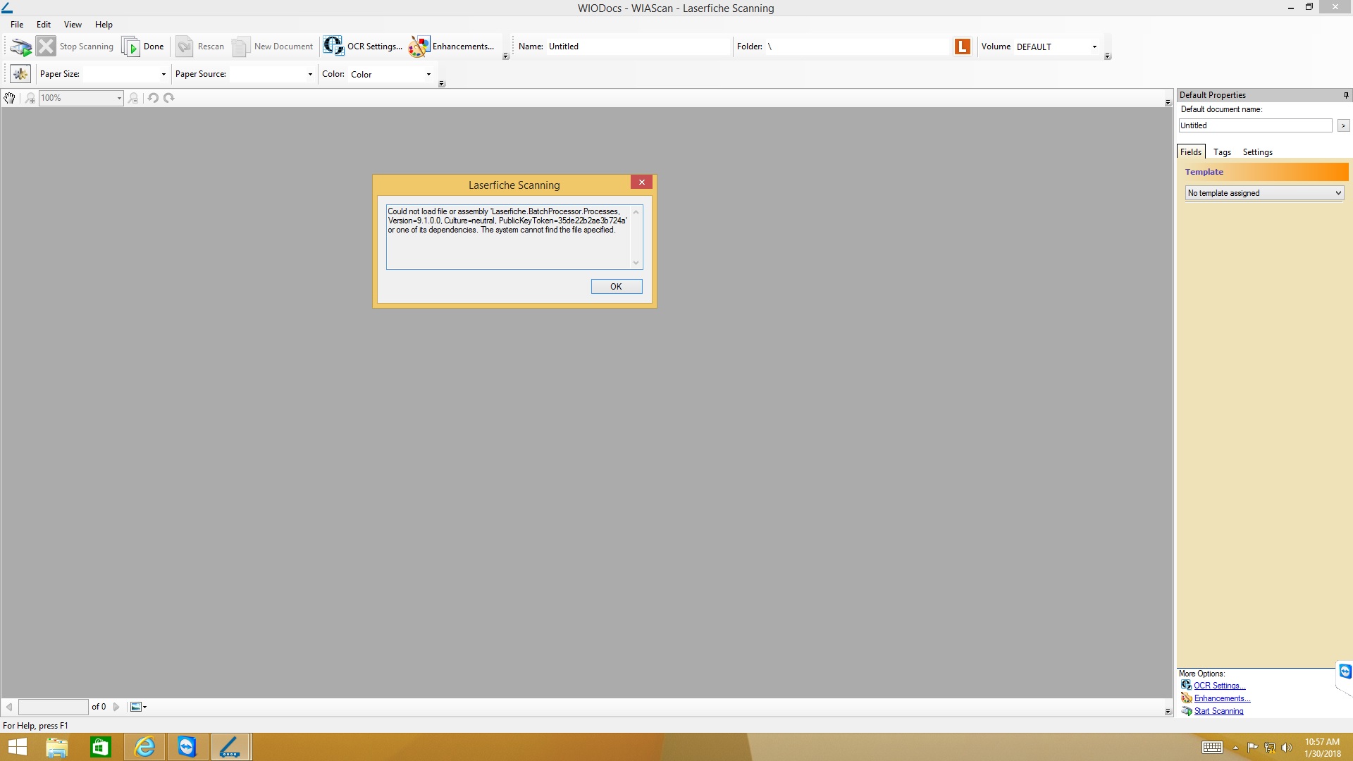 We tried Laserfiche Scanning 9.0 and 9.2 same error with both.