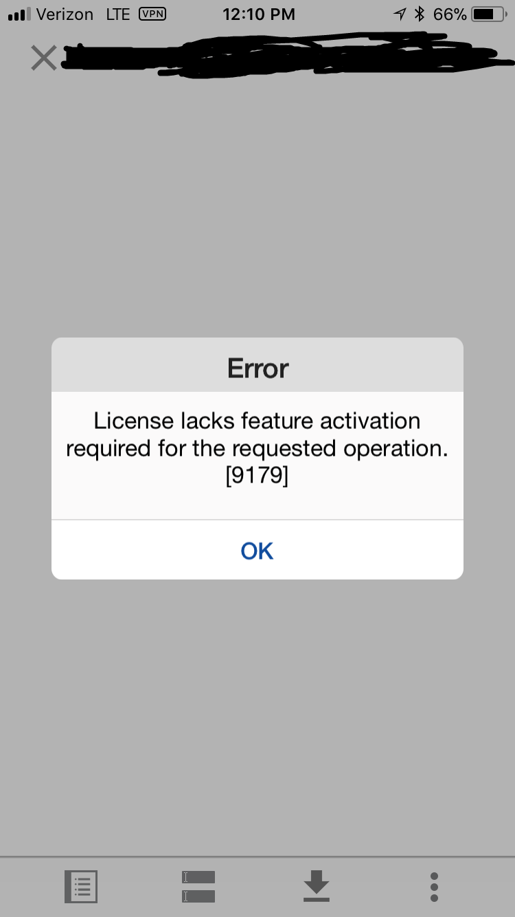 My client is experiencing an issue where when they try to access any document in their lf mobile app, it gives them a 9179 error, "License lacks feature activation required for the requested operation."