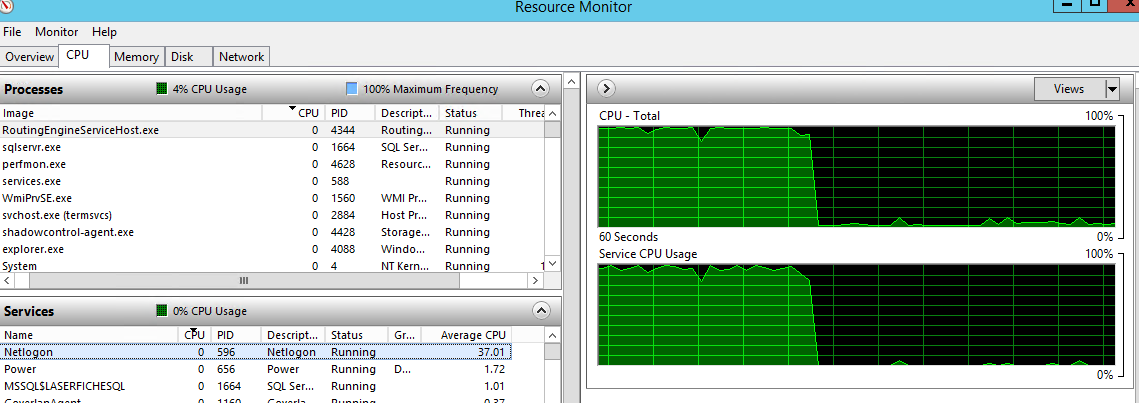 This past week I updated our Laserfiche Server, Forms, and Web Access from 10.2 to 10.3. All of the sudden, the CPU on my SQL server, which also has Forms installed on the same server, keeps maxing out. it is at 100% more often than it is not.