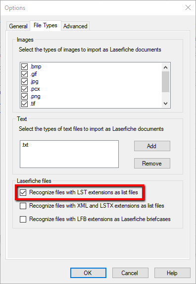 Attached is the *.lst file renamed as a *.txt file so the "Laserfiche Attach File" option below would allow an upload.