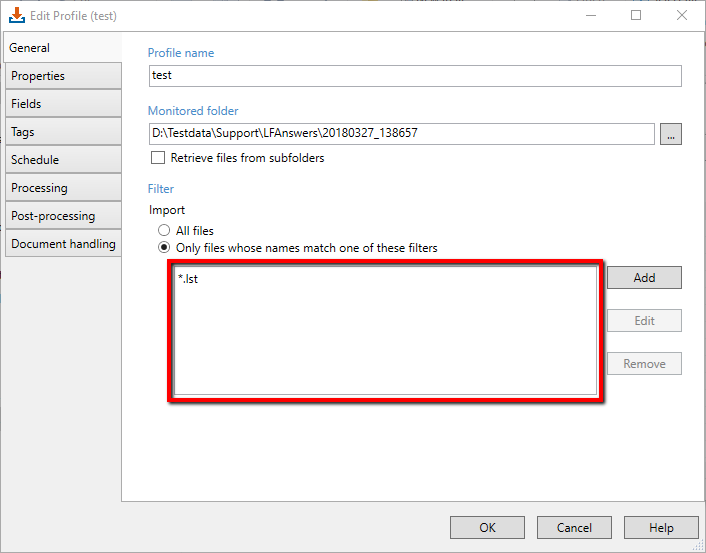 Both Tiff and LST files exist in the "monitored" folder.