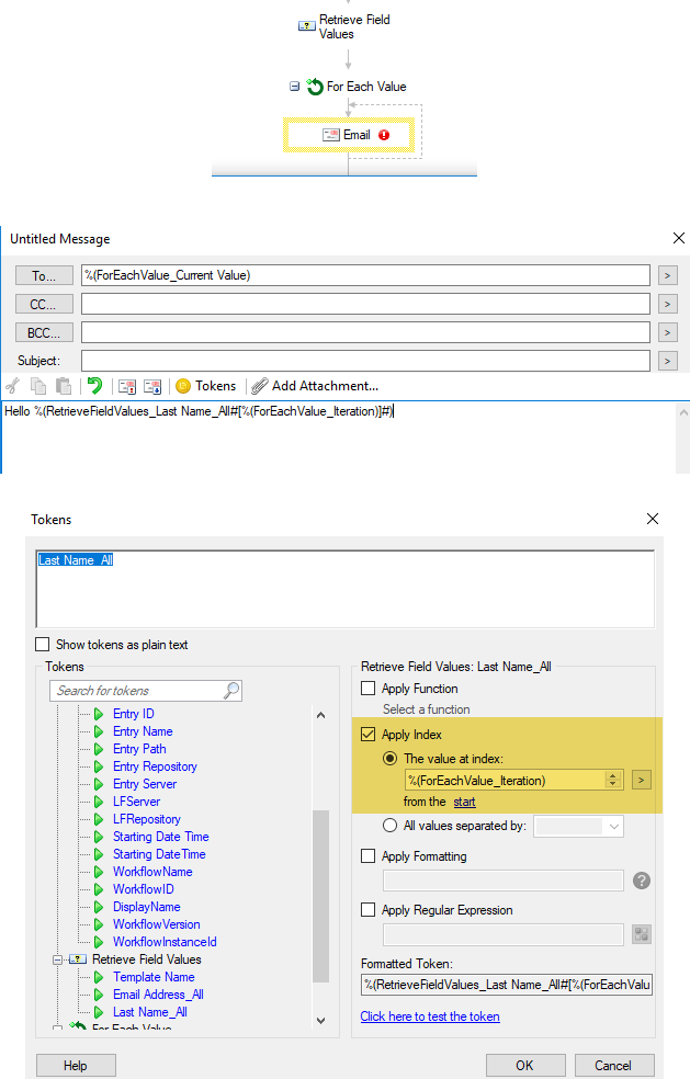 What I can't manage to figure out is how to retrieve the values in Workflow. If I Use "ForEachValue" activity, it only allows me to pick one value "Current Value", but I can't figure out how to get multiple values and use them at the same time.