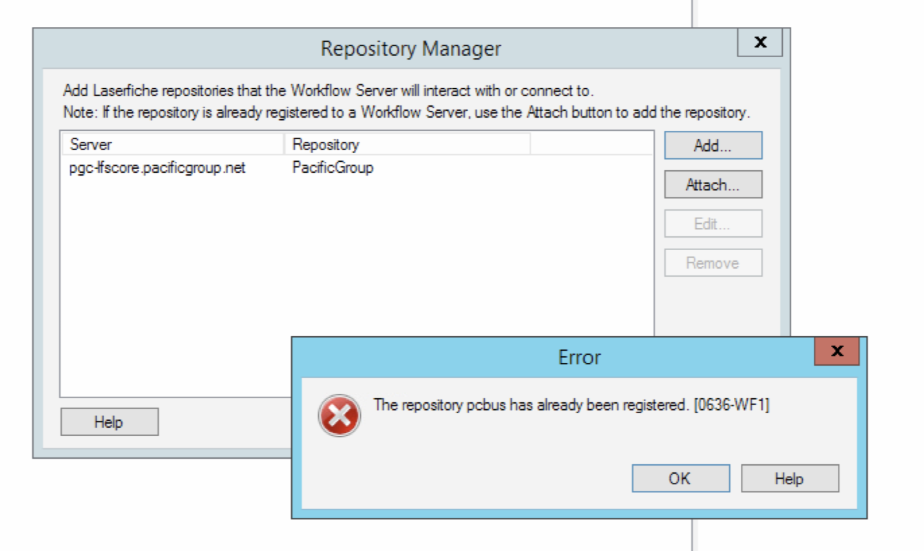 See attached screenshot, I think this is the problem, I cannot get the new repo to appear in this config list - in workflow administrator, it says it is added - but does not show in the list. And condition I make against the PCBUS repo are not triggered and don't run, I can run them manually though.
