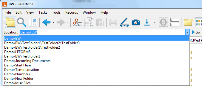 In the Laserfiche client on the Navigation tool bar, the Location: drop down menu shows the last 10 recent locations in the repository. In version 9 if you have multiple repositories, it would show locations from more than one repository. In version 10 it shows the last 10 location from one repository. If you navigate to the second repository, it will display the last 10 locations from the second repository. Is it possible to display the location from more than one repository in version 10 or is this just a change in the way location information is displayed?
