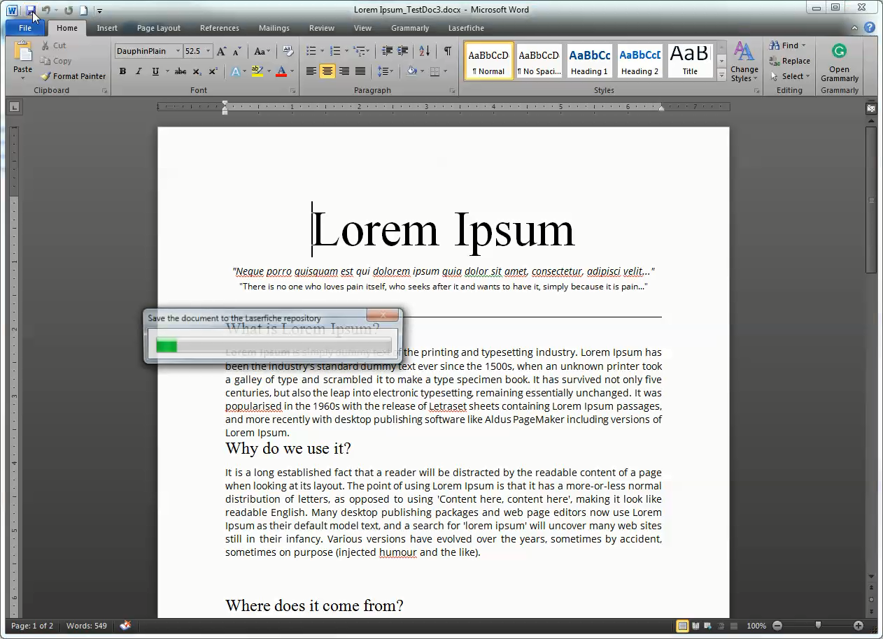 When a document is checked out, (for example a Word document), an edit is made and then click save, there is the quick pop-up that says "Save the document to the Laserfiche repository." (See screenshot.)  I did a test on my machine and this occurred as well, looks like it is still linking up to the Repository, even after being checked out.