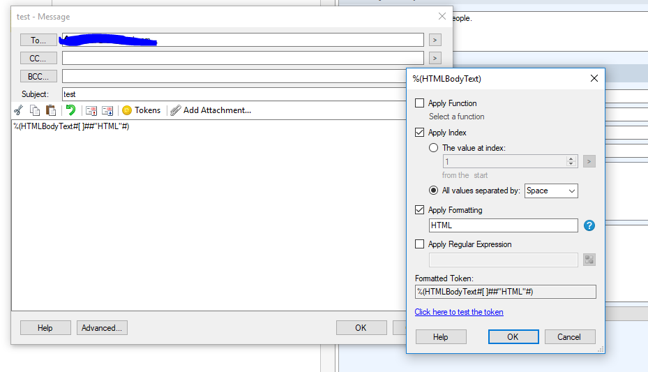 I have a script that collates data and wraps it in an HTML table. If I assign the HTML to a string and send the email from within the script using system.net.mail.mailmessage object, the email I receive renders the HTML correctly. However if I put the HTML into a token using SetTokenValue