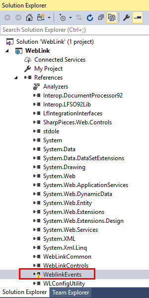 Weblink 10.1 WeblinkEvents assembly reference is missing