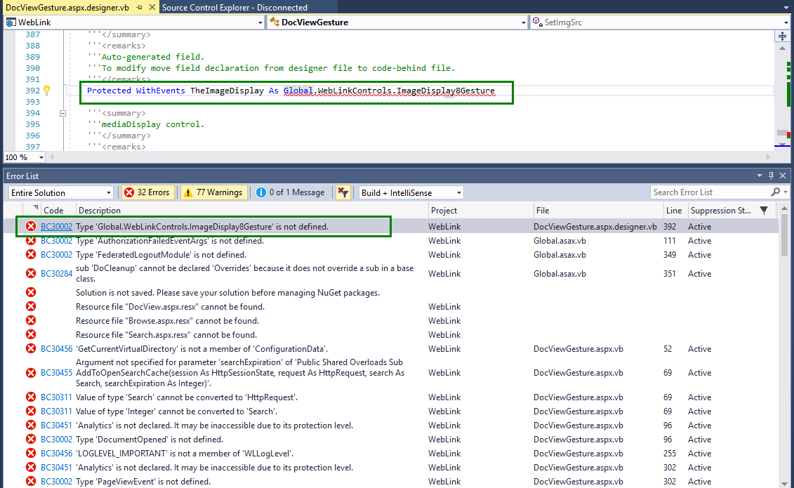 I've opened the WebLink.vbproj in Visual Studio 2017 as I need to make a couple of changes that require a re-compile.