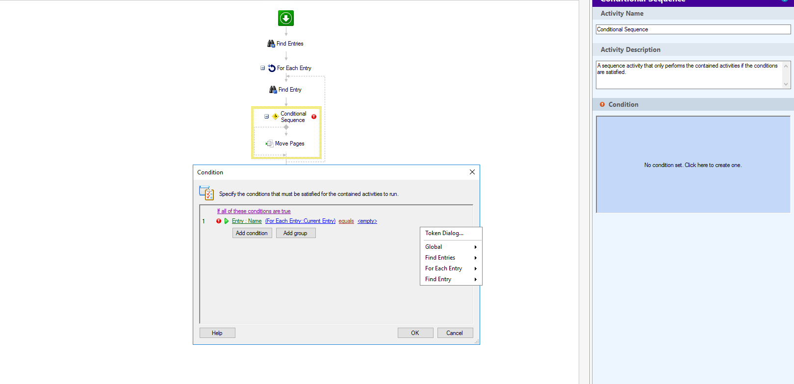 2. Conditional Sequence (If Find Entry EntryWasFound = true)