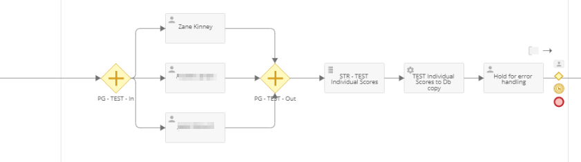 I have a form that needs to be reviewed and scored by multiple users. I have created a collection for them to enter their scores and comments. Each user can complete their task in no particular order (not serialized) and they should not see each other's scores. I have put together the following Jquery which is functioning the way I want it to in the form, but information being passed forward in the process is only the last user's submission. I've also attached an image of the process to aid in understanding what i'm trying to do.