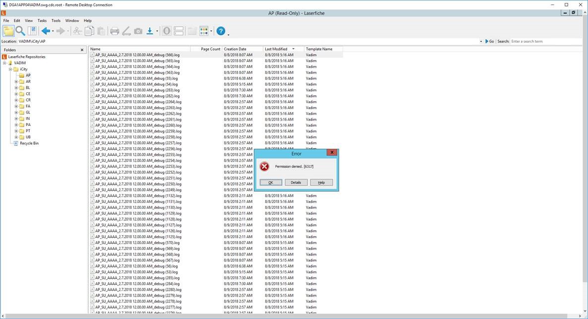 When I try to delete a document through the laserfiche client, it's giving me Permission Denied [6317] message. But I am able to view/open all the documents. Is this because of the expired license? The only reason I am not sure is because it's allowing me to login to both the client and the admin and view all the documents through the client but not delete them.