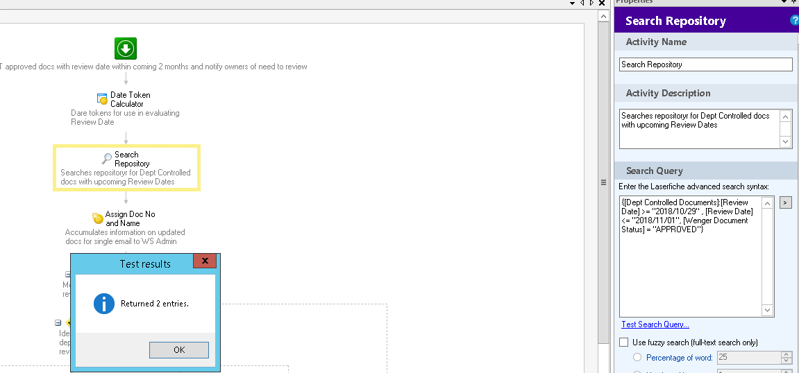 I used the web client to build my search syntax for use in a workflow that manages documents based on their review date. The search criteria used returns three documents (two Word, one PDF) when used in the web client and only two documents (the Word docs) when used in the Workflow.