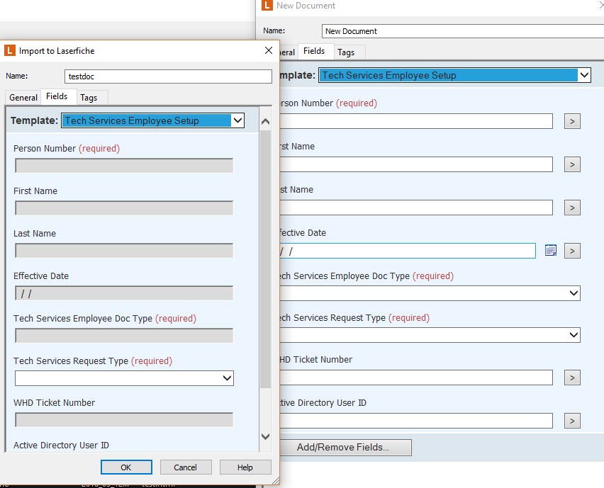 When I right-click a file and select Send To from the context menu, then select Laserfiche, I am unable to edit all the fields of a template I normally have access to.