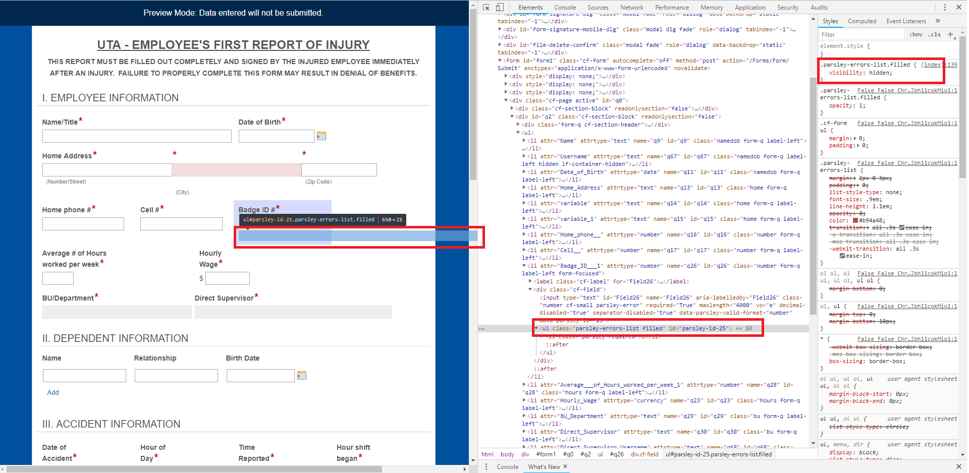 As you can see, the fields shift upwards when there is no user input. I already have hidden the parsley-required class, not sure what else to do.