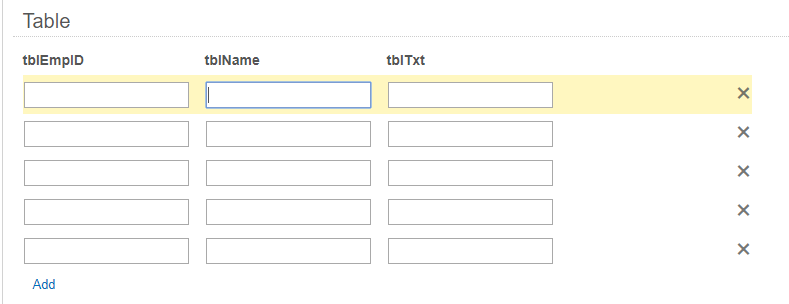 I have two input fields with label empID and Name with calsses empID and Name, also has a table with class tbl1 that has 3 columns tblempID, tblName and tblTxt with calsses tblempID, tblName, tblTxt. How to set empID field value to be the same tblmpID value when any tblTxt cell value changed in each row in table.