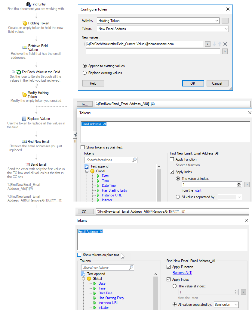 Now, they want to make this field multivalued and they want to put the first value as To email address and any other values they put should be on CC. They will just put the firstname.lastname and worflow should append the "@domainname.com".