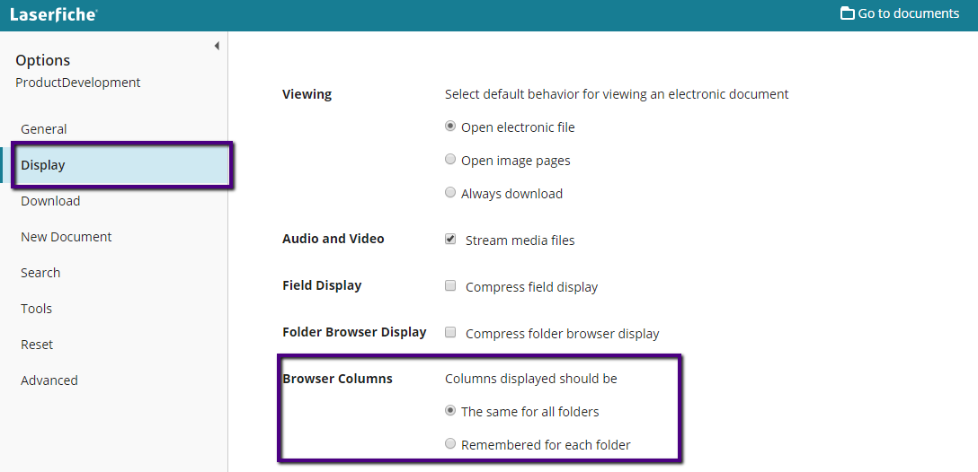 There is an option to retain the same set of columns for all folders in the repository. That way, you don't have to set them on each folder individually.