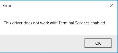 When running Snapshot, they get the error, "This driver does not work with Terminal Services Enabled." (See screenshot.)