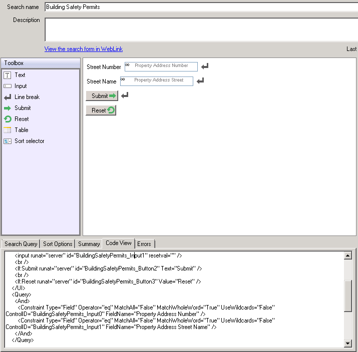 we are using WebLink 9 and we setup a Search form on the home page to do a search for permits. I managed to get this going, my question though is where can I put line of code to specify where this search occurs once the submit button is hit?