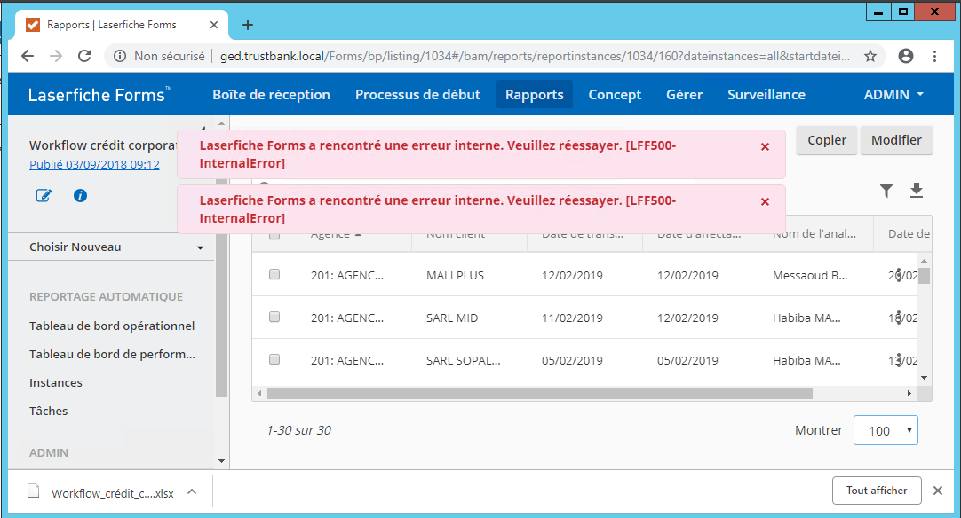 [502]: Une erreur inattendue s'est produite. [LFF502-UnexpectedError]
