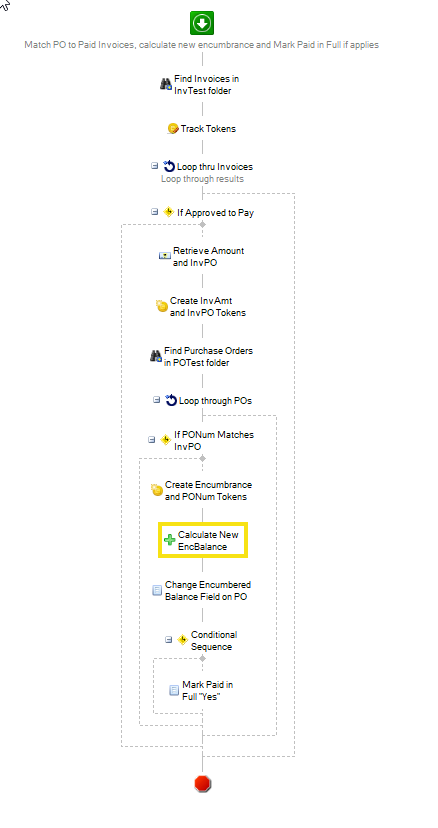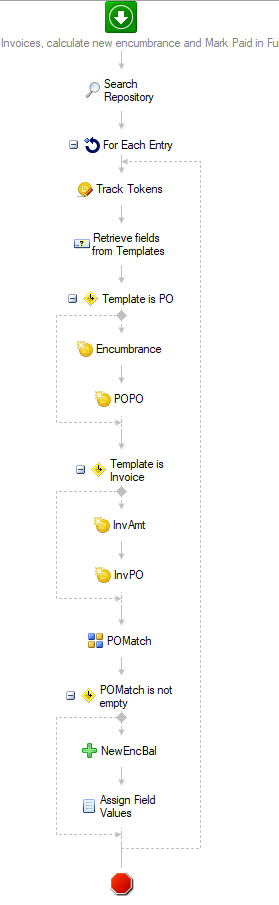 Depending on the template, I'm assigning tokens to store the Invoice Amount and PO# from the Invoice and then the Encumbrance Amount and PO# from the Purchase Order document.