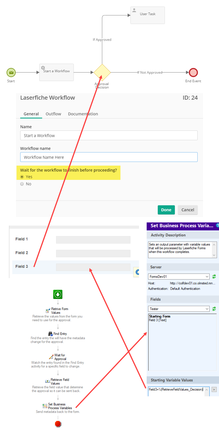 Can Workflow communicate an approval, based on a change in metadata in the repository, to Forms and use that approval to advance to a new stage or step in the Forms process?