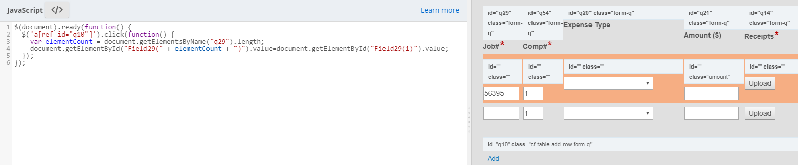 We are working on setting up our Expense Reports in Laserfiche Forms. We have a collection where an employee would enter job# and fill out details on the expense. For ease of data entry on our employees, is it possible for the collection to copy the job# they enter on line 1 so it displays as the job# on line 2 when they click add?
