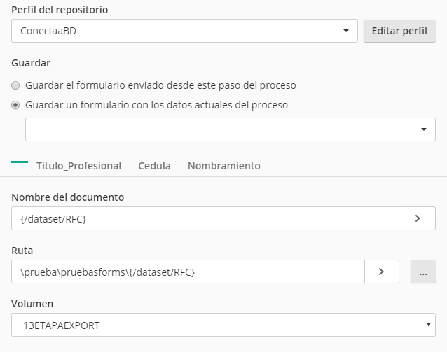 Selecciona el formulario a guardar