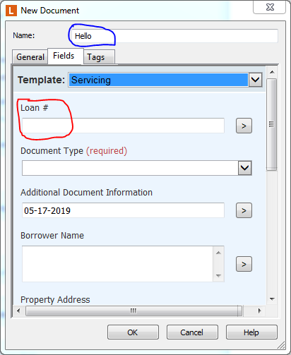 When creating a new document from an exiting document, this window pops up. My cursor pops up in the blue circled field and would like to know the process and where to go on how to change to the red circled field.