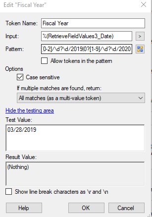 I found this Pattern: 1[0-2]/\d?\d/2019|0?[1-9]/\d?\d/2020, but it returns a Result Value of (Nothing.)