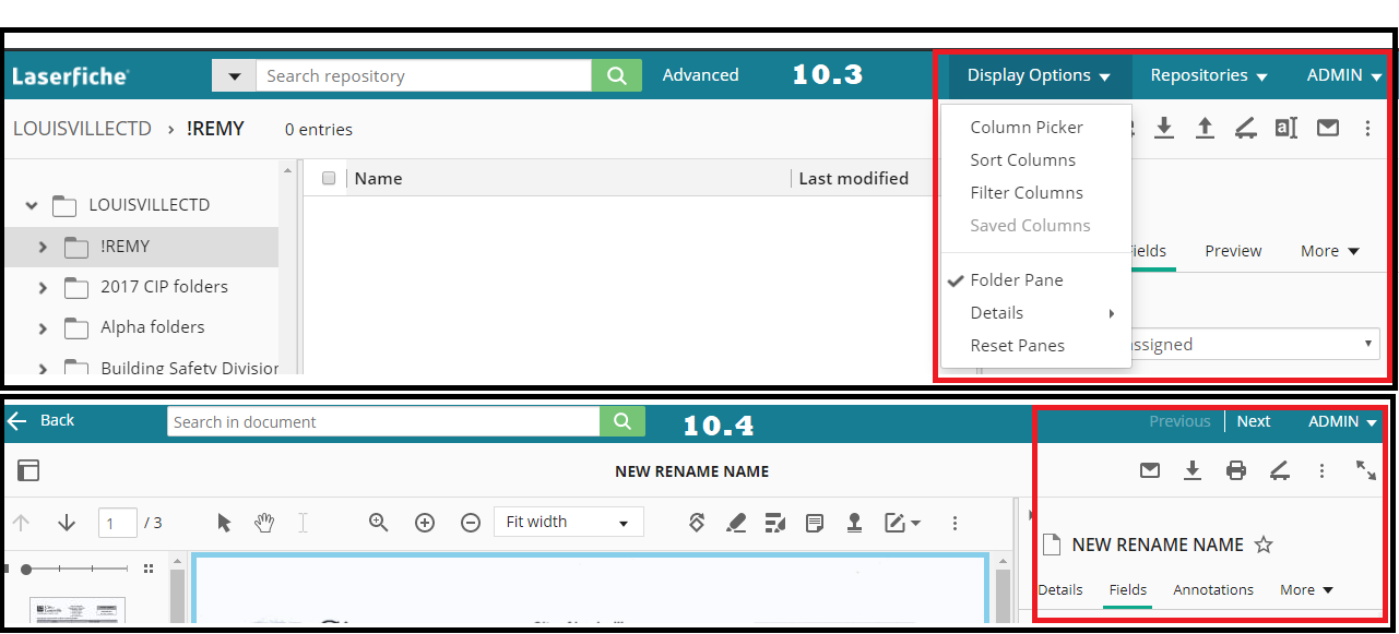 We are currently testing LF 10.4 Web Client and one of our user asked us how we can enable Display Options in 10.4. I am attaching a picture showing how it looked in 10.3 as it has the drop down for Display Options. I do see some of these tools that are in Display Options on the toolbar in 10.4 but not all of them. Is this a new change to 10.4 or do I need to enable this feature somewhere? Thanks for your help.