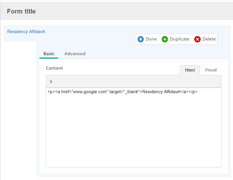 I have added a Custom HTML item to my form. However when I click the link, it appends items to link URL.