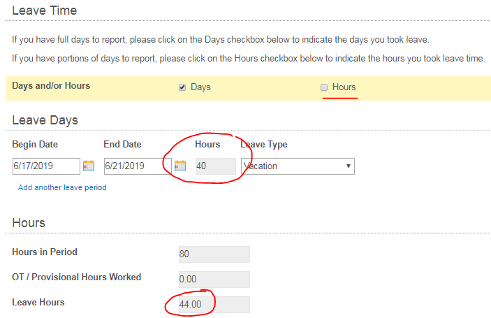 The current calculation for the total "Leave Hours" field is as follows: