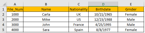 As you can see from the data table below, it has File_Num fields, lets assume the is a database table in MS SQL.