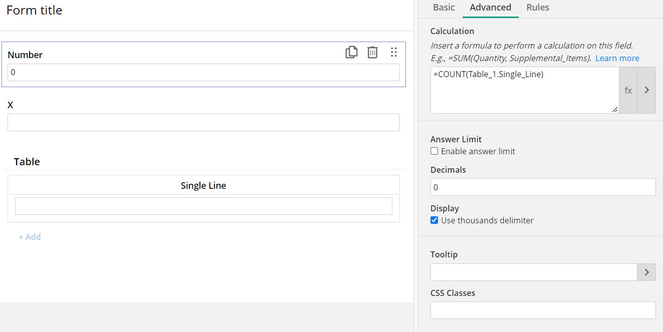 Is there a FX formula to display the total number of lines within a table, that is auto populated from a lookup? The idea is to provide the end user, to be able to see the total lines generated at a quick glance.
