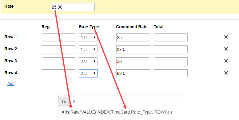 The Formula I am using in Date Rate (3) is =IF(Rate_Type=1.5,fstRate*1.5,fstRate).