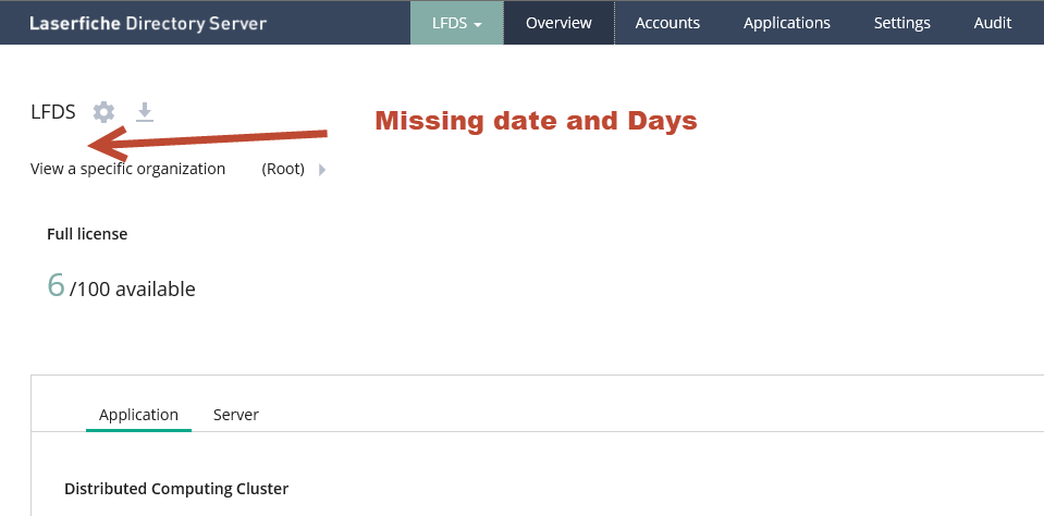 The Master License expiration date and Days remaining is not being displayed on Directory Server Overview page. Any idea why? Is there a setting somewhere that turns this on or off? Snapshot attached.