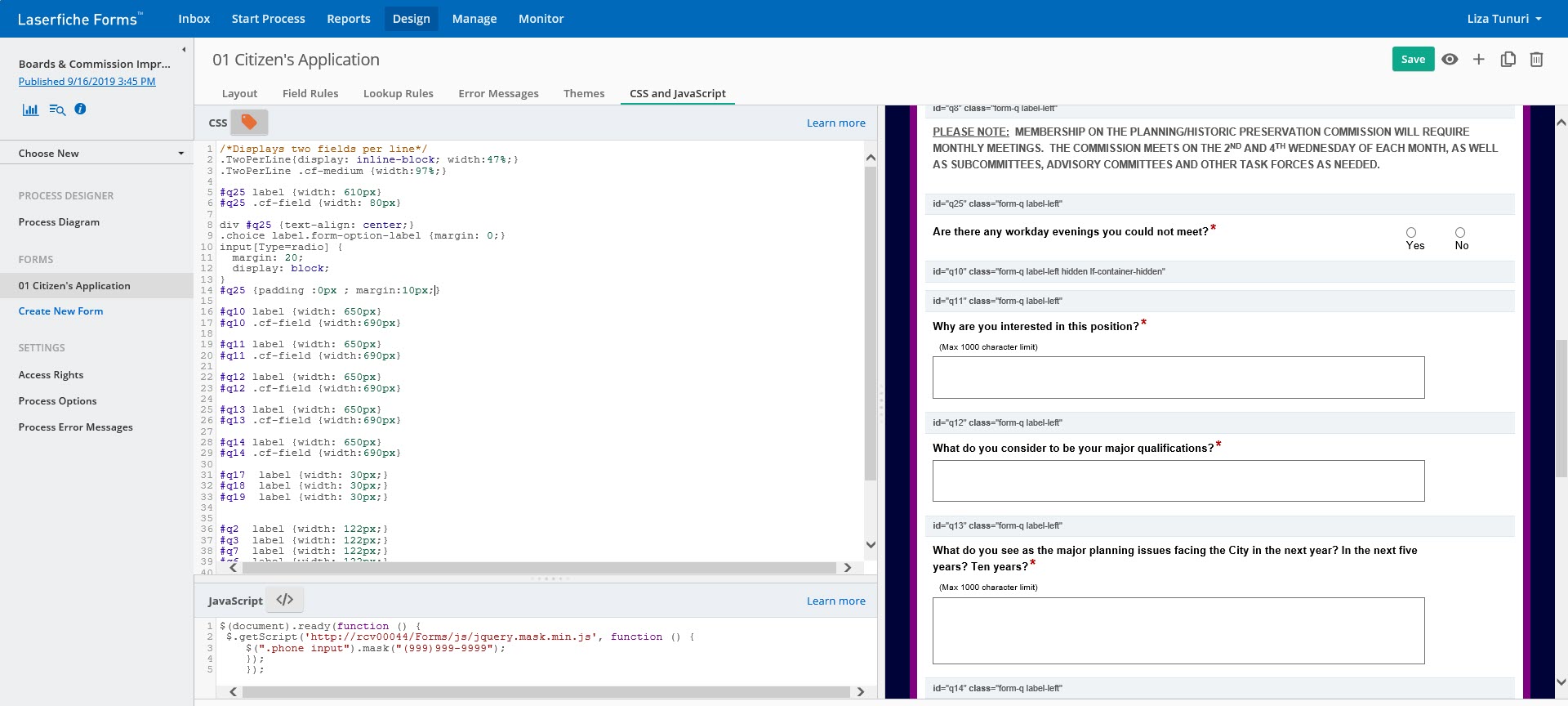 Some of the field elements like input do not exist in the archived version of the form, so your CSS that is determining the positioning and layout may not work in the archived version.