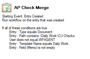 Here is the starting rule for the workflow that grabs the check and looks to see if there is a matching invoice in the system