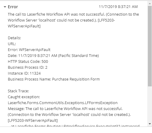 1) Our Database Administrator deleted any orphaned sessions/connections in the Workflow database, but this did not appear to help.