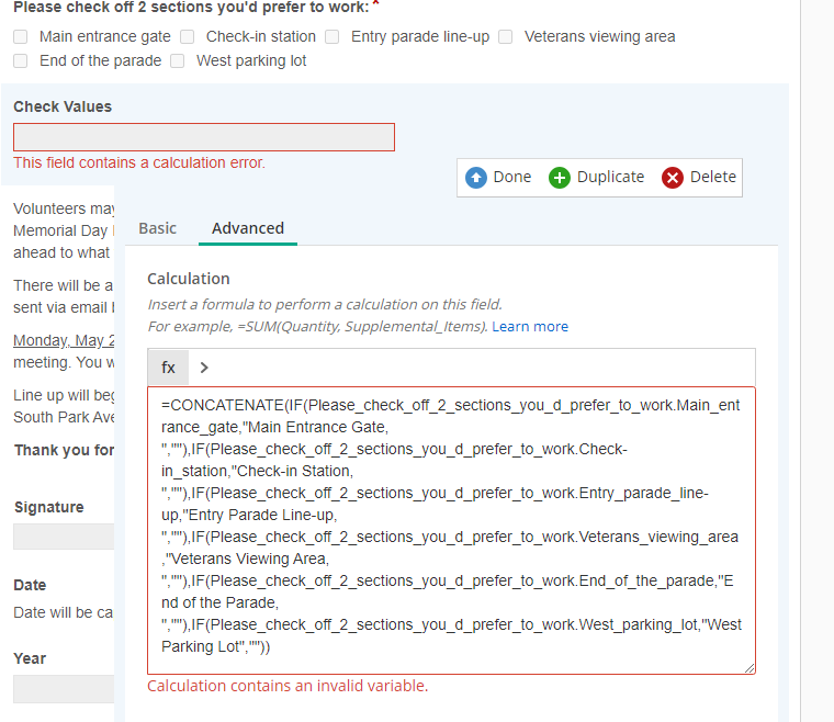 In another thread regex was suggested but I'm not entirely sure how we can regex the list of checked values and then use that in an HTML text block (as shown above).