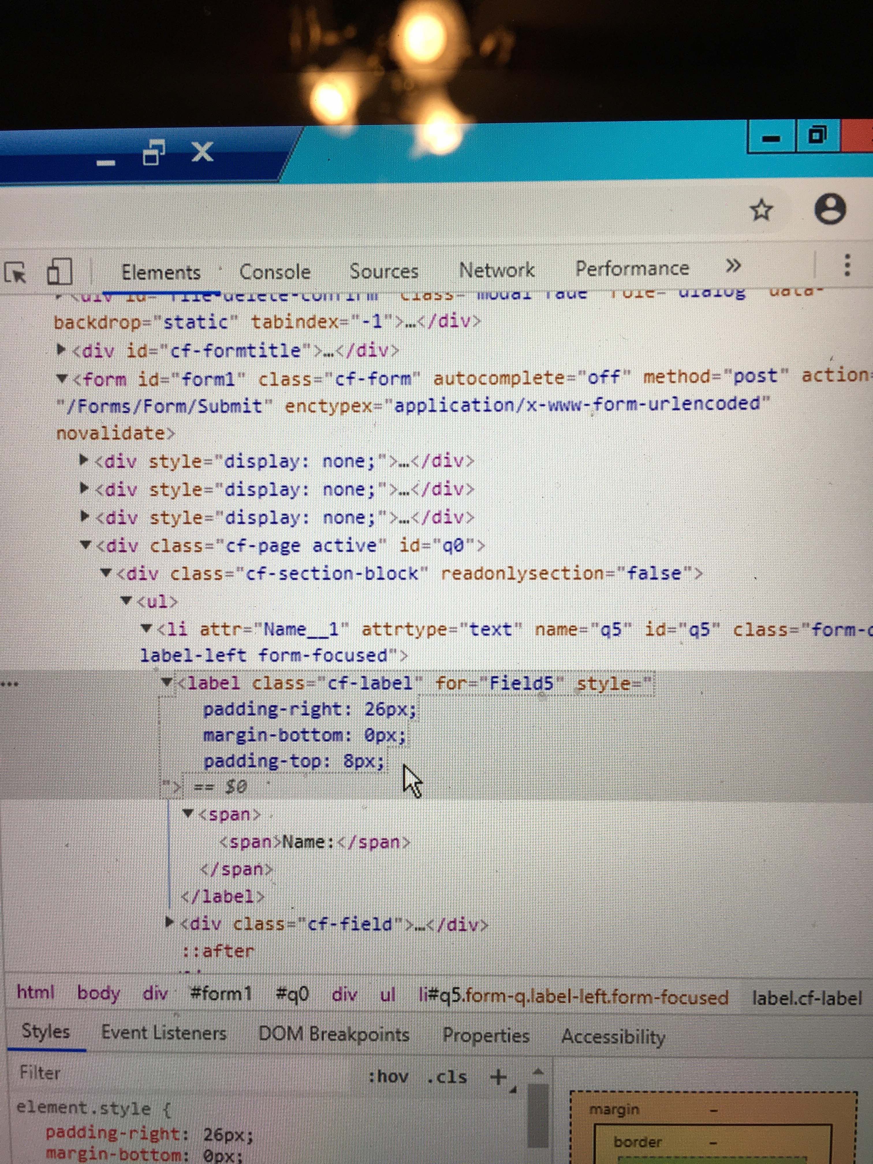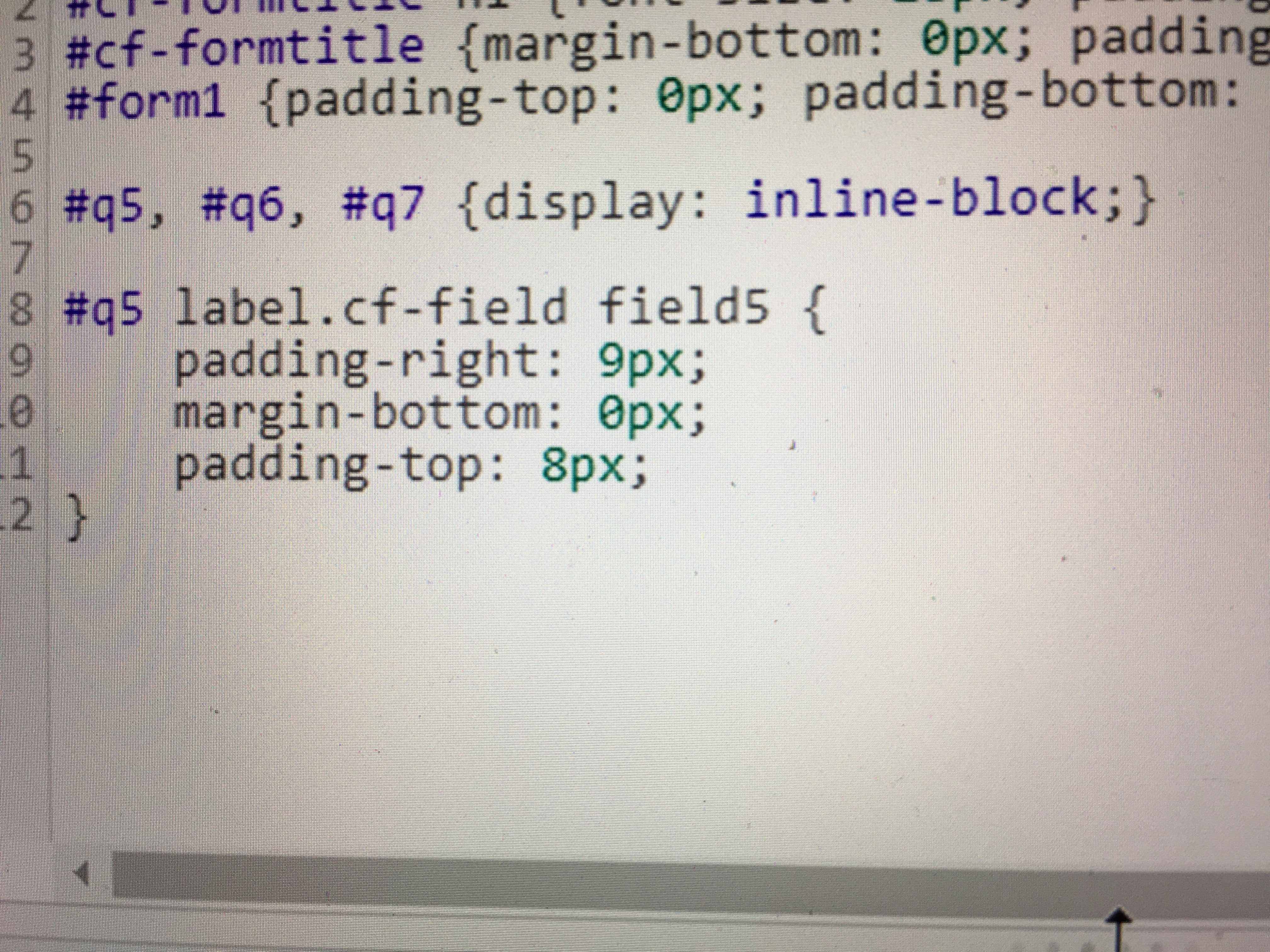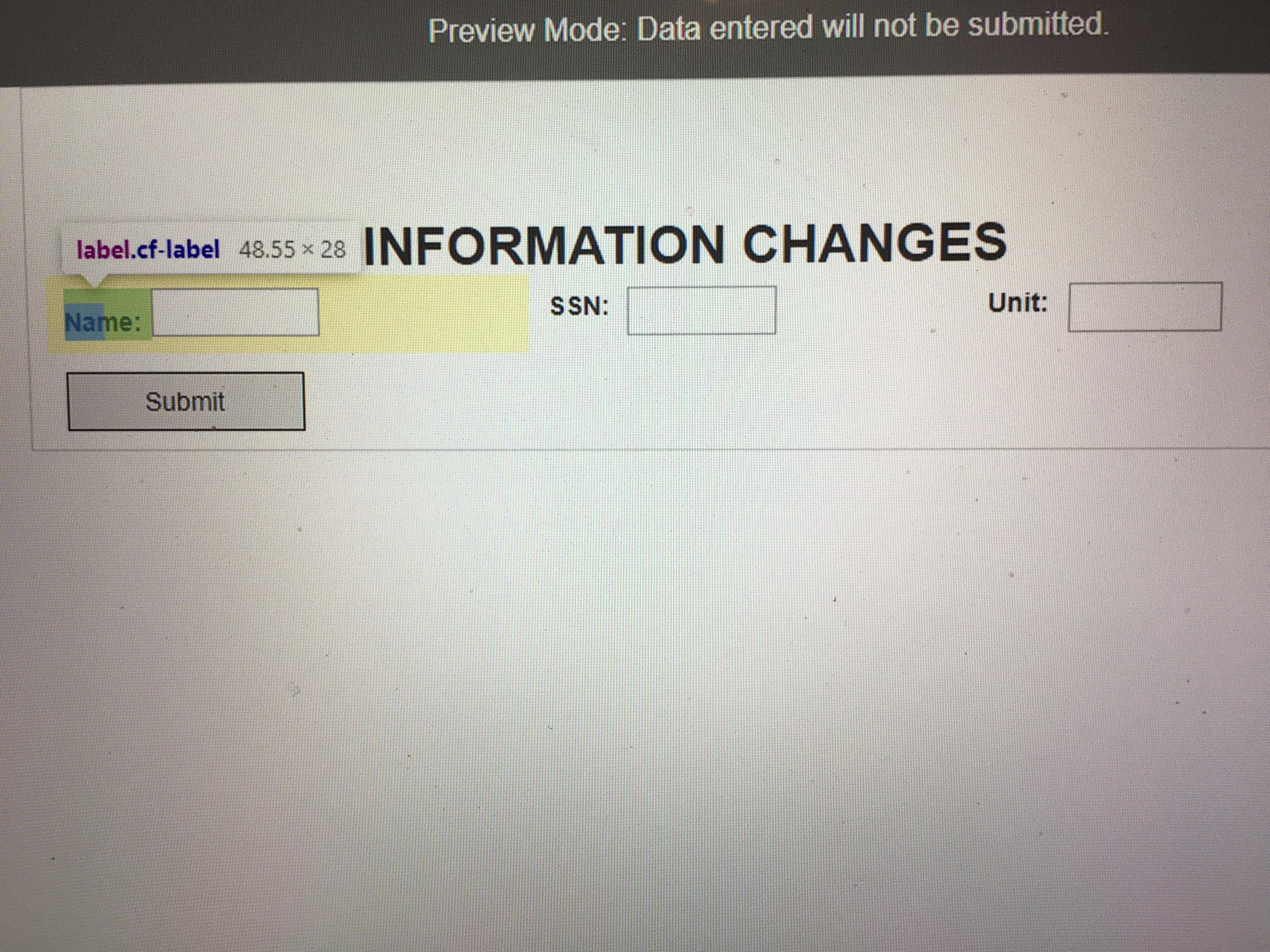 Hi, I'm trying to create a CSS code have a label flush at the bottom with some padding. But I can't seem to write the code correctly. Can someone help with this. Once I get the code I will code the other two fields. thanks in advance.