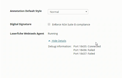 In the Laserfiche 10.4.3 Web Client under Options-> Advanced, I have noticed the following: