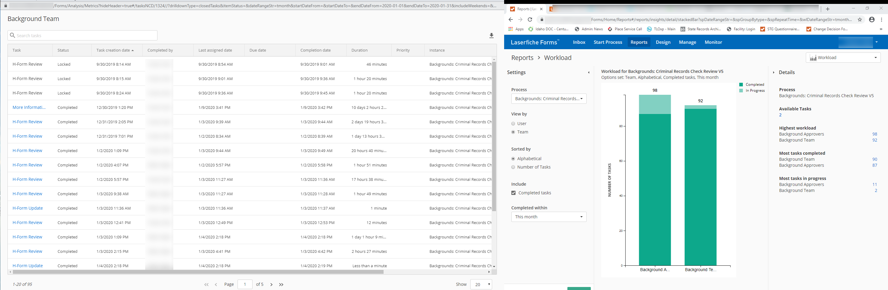 We recently updated to Forms 10.4.2.381 and were excited to start playing with the new Process Insight Reports. However, we've noticed that sometimes when we pull the report and then click on the details to see the specific instances some of the instance status' are "Locked". And even though the report is filtered for "this month" it is showing a few instances from back in August 2019? Has anyone else seen this or knows whats causing it?